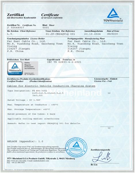 A milestone achievement came in 2021, when Far East’s liquid-cooled high-power charging-pile cable earned the first TÜV Rheinland certification in China and was successfully deployed at the Beijing Winter Olympics supercharging station. It maintained exceptional thermal stability at power levels above 1500kW, offering valuable insights for subsequent liquid-cold-plate development.